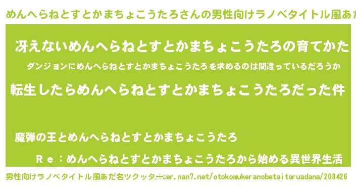 | 女子向けラノベタイトル風あだ名 | 『めんへらねとすとかまちょこうたろの玉の輿計画!』 |
