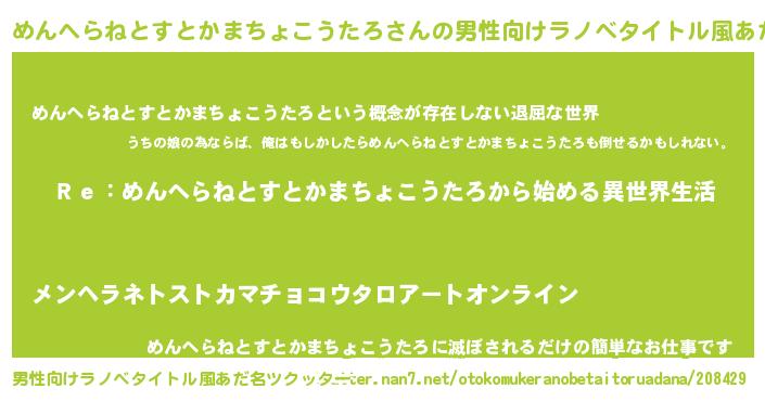 | 意味不明あだ名 | 『自称めんへらねとすとかまちょこうたろ』 |