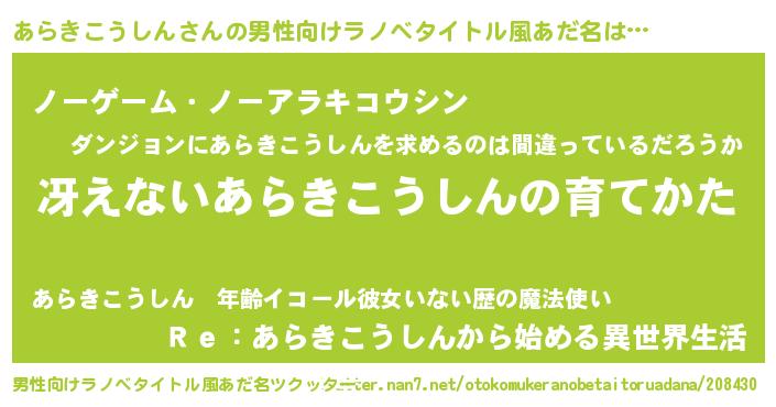 | 女子向けラノベタイトル風あだ名 | 『男装あらきこうしんの憂鬱な任務』 |