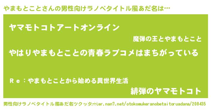 | 女子向けラノベタイトル風あだ名 | 『やまもとこと伯爵の花嫁』 |
