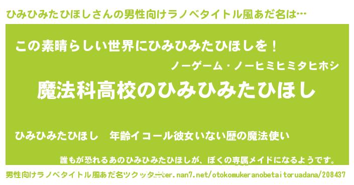 | 女子向けラノベタイトル風あだ名 | 『ひみひみたひほしなんてお断りですっ。』 |
