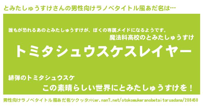 | ヒーロー風カッコイイあだ名 | 『ネオトミタシュウスケ』『仮面トミダー』 |