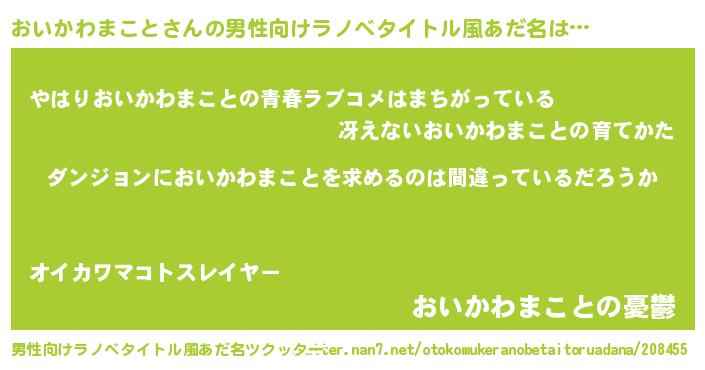| 女子向けラノベタイトル風あだ名 | 『おいかわまことは平凡を望む』 |