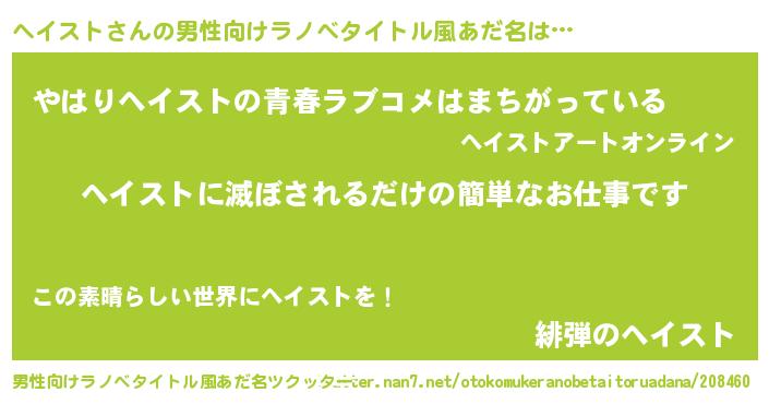 | 胡散臭い通販商品みたいなあだ名 | 『運命の人と巡り会える高級そうな絵画…その名も「ヘイスト」』 |