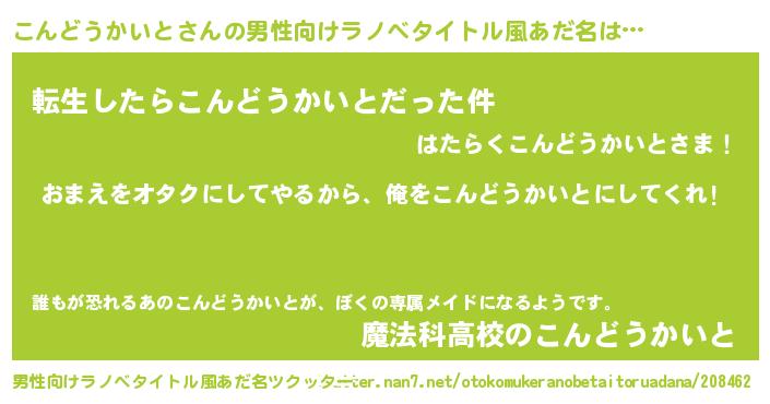 | ヘコむあだ名 | 『こんどうかいと(爆)』『こんぷりん』 |