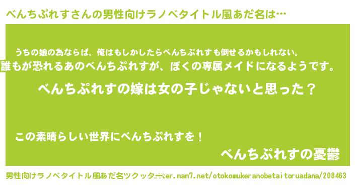 | 女子向けラノベタイトル風あだ名 | 『べんちぷれす様がみてる』 |
