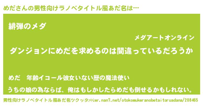 | 胡散臭い通販商品みたいなあだ名 | 『信頼と実績のペンダント…その名も「めだ」』 |