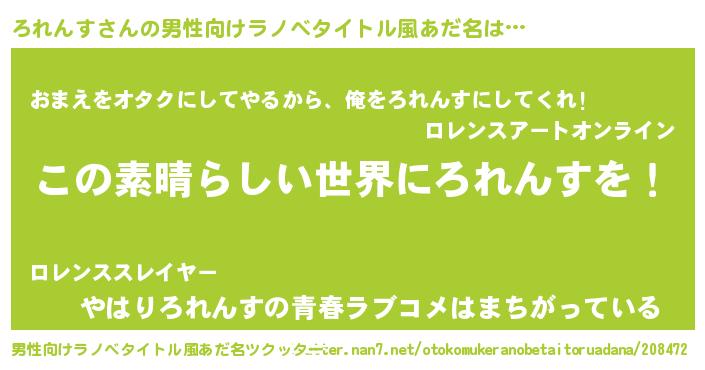 | 女子向けラノベタイトル風あだ名 | 『乙女ゲームの破滅フラグしかない悪役ろれんすに転生してしまった…』 |