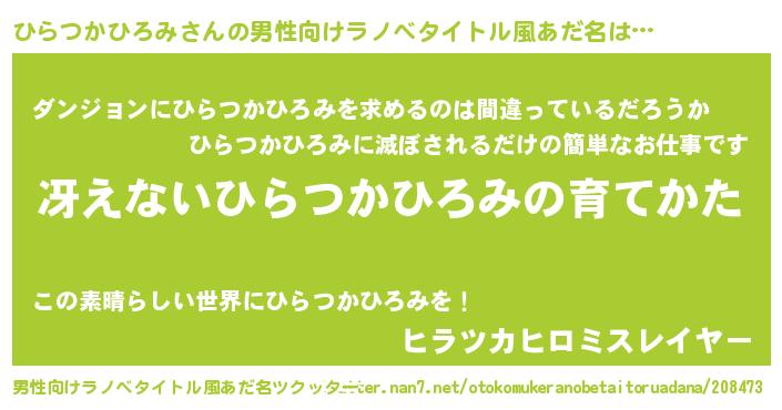 | 胡散臭い通販商品みたいなあだ名 | 『伝統あるサプリメント…その名も「ひらつかひろみ」』 |