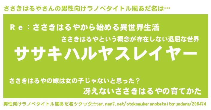 | 肩書あだ名 | 『ささきはるや少佐』『ささきはるや総統』 |