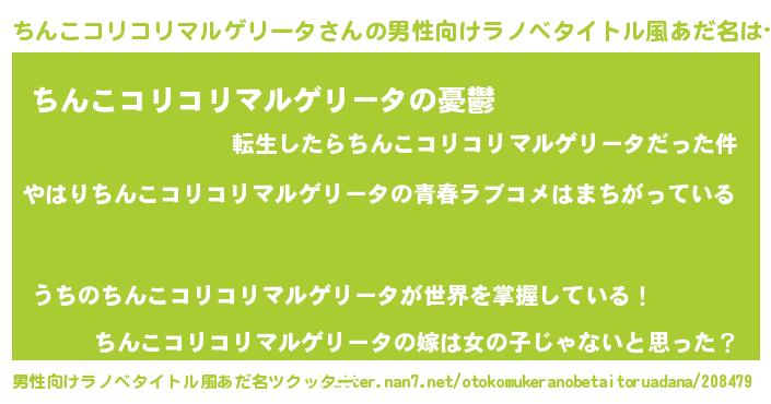 | 女子向けラノベタイトル風あだ名 | 『ちんこコリコリマルゲリータの雑貨屋さん』 |