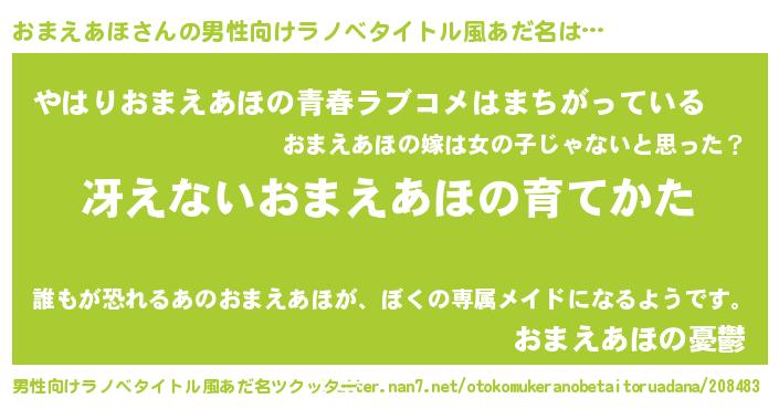 | 胡散臭い通販商品みたいなあだ名 | 『世界が平和になる高級そうな絵画…その名も「おまえあほ」』 |