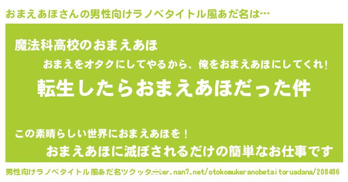 | 胡散臭い通販商品みたいなあだ名 | 『テレビで話題の冬虫夏草…その名も「おまえあほ」』 |