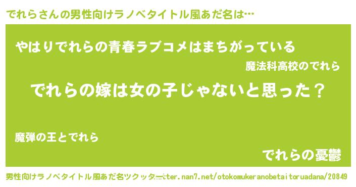 | 意味不明あだ名 | 『とにかく怪しいでれら』『自称でれら』 |