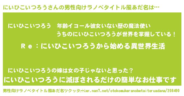| 女子向けラノベタイトル風あだ名 | 『闇のにいひこいつろう』 |