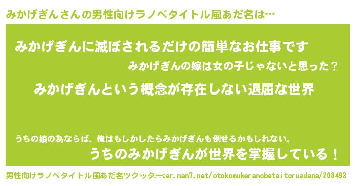 | 胡散臭い通販商品みたいなあだ名 | 『絶対に幸福をもたらす健康食品…その名も「みかげぎん」』 |