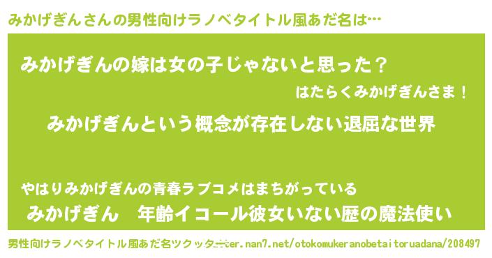 | 胡散臭い通販商品みたいなあだ名 | 『絶対に幸福をもたらす健康食品…その名も「みかげぎん」』 |