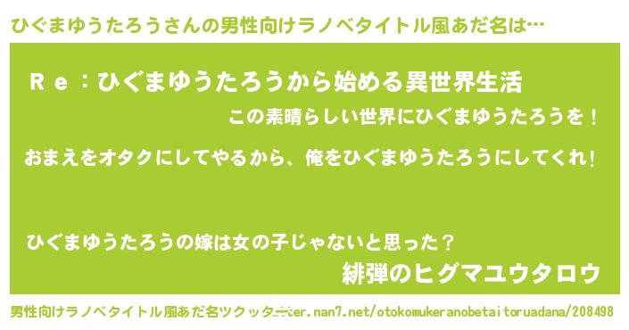 | 女子向けラノベタイトル風あだ名 | 『ひぐまゆうたろう恋絵巻』 |