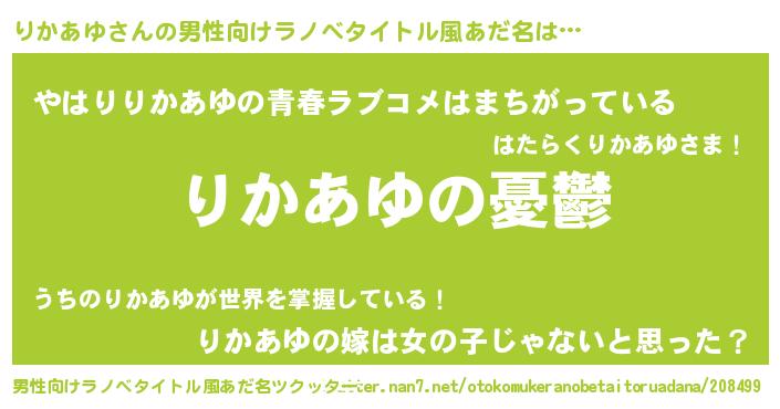 | 胡散臭い通販商品みたいなあだ名 | 『必ず成功する霊験あらたかなお札…その名も「りかあゆ」』 |