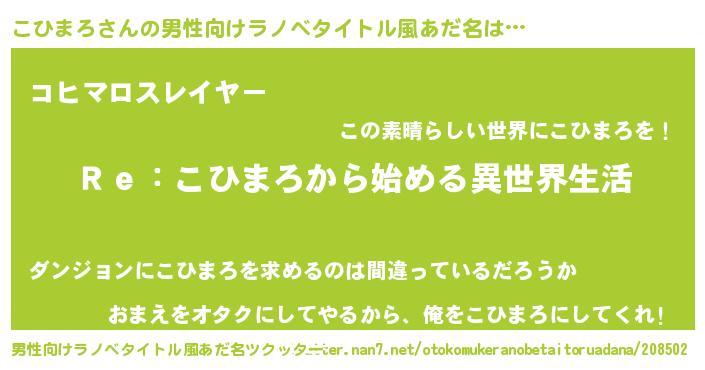 | 女子向けラノベタイトル風あだ名 | 『こひまろストレイドッグス』 |