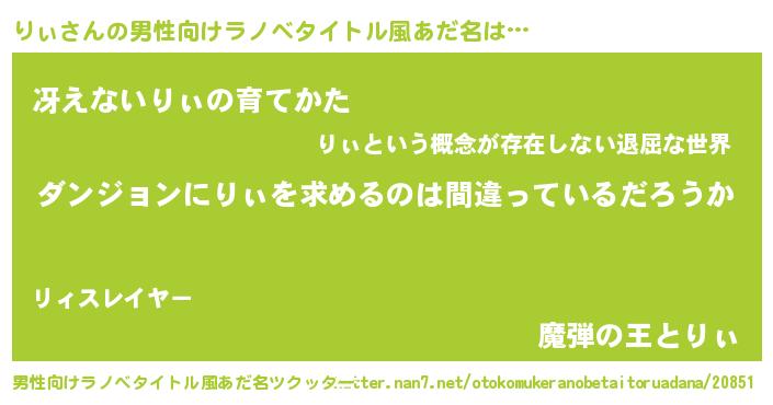 | 女子向けラノベタイトル風あだ名 | 『りぃは平凡を望む』 |