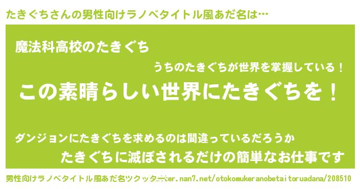 | 意味不明あだ名 | 『住所不定無職たきぐち(40歳)』 |