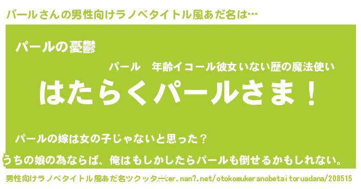 パールさんの男性向けラノベタイトル風あだ名をツクッター!