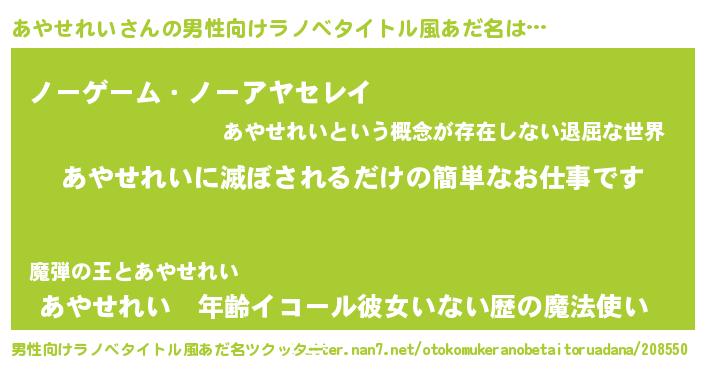 | ヘコむあだ名 | 『あやせれい(笑)』『あやっ子』 |