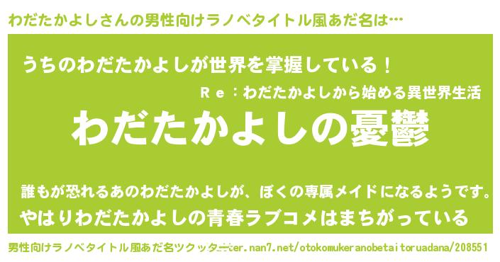 | 女子向けラノベタイトル風あだ名 | 『わだたかよし姫と円卓の騎士』 |