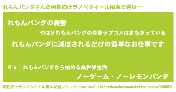 | 伝説のあだ名 | 『封印されし竜騎士れもんパンダ』 |