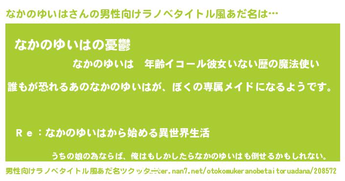 | 女子向けラノベタイトル風あだ名 | 『異世界でカフェなかのゆいはを開店しました。』 |