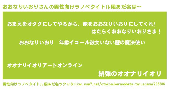 | 女子向けラノベタイトル風あだ名 | 『おおなりいおりの玉の輿計画!』 |