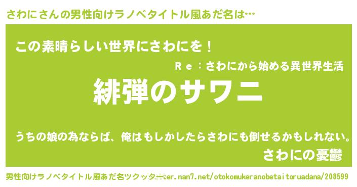 | ヒーロー風カッコイイあだ名 | 『仮面サワダー』『スーパーサワニ』 |