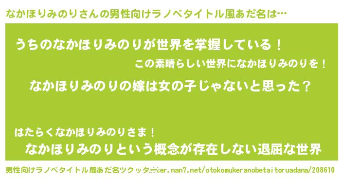 | ヘコむあだ名 | 『なかっぺ』『なかほりみのり(小並感)』 |