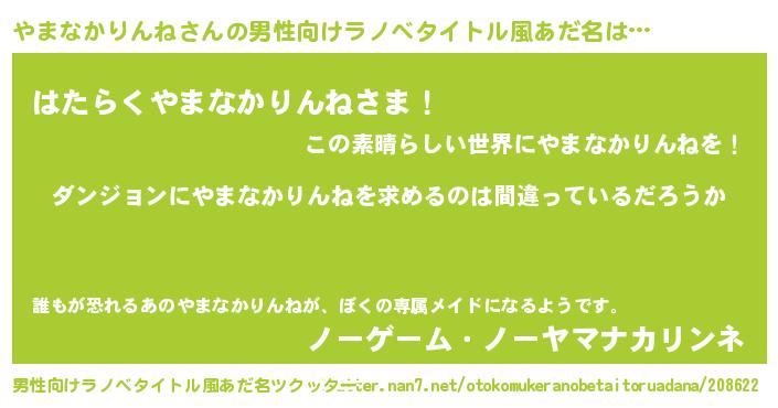 | 女子向けラノベタイトル風あだ名 | 『やまなかりんねの卵を拾いまして』 |