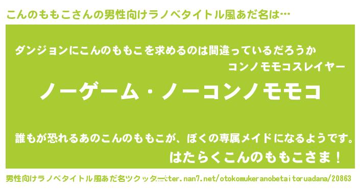 | 女子向けラノベタイトル風あだ名 | 『死神こんのももこの再婚』 |