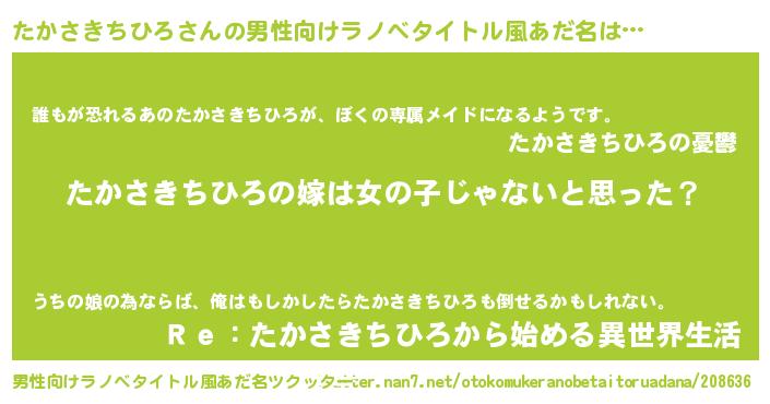 | 女子向けラノベタイトル風あだ名 | 『たかさきちひろ様がみてる』 |
