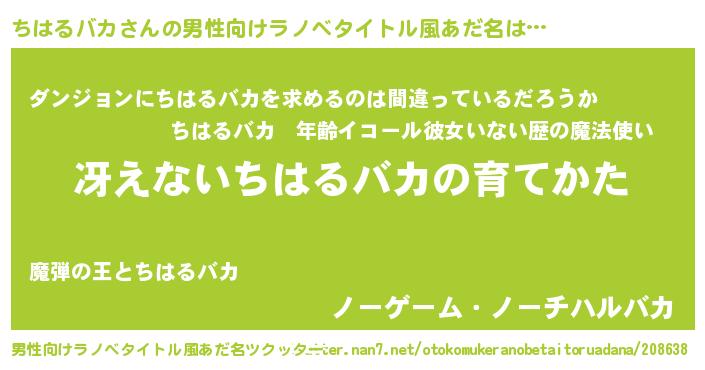 | 女子向けラノベタイトル風あだ名 | 『男装ちはるバカの憂鬱な任務』 |