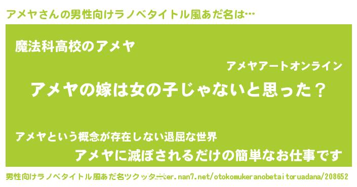 | 意味不明あだ名 | 『とにかく怪しいアメヤ』『自称アメヤ』 |