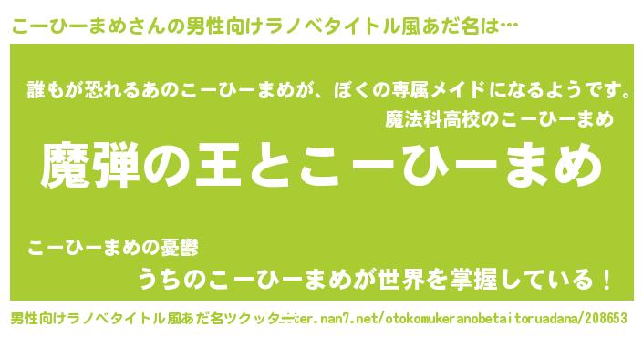 | 意味不明あだ名 | 『住所不定無職こーひーまめ(95歳)』 |