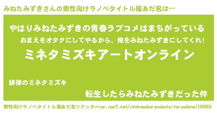 | 女子向けラノベタイトル風あだ名 | 『誰かこのみねたみずきを説明してください! ~契約から始まるウェディング~』 |