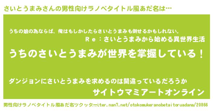 | 意味不明あだ名 | 『さいとうまみフォーエバー』 |