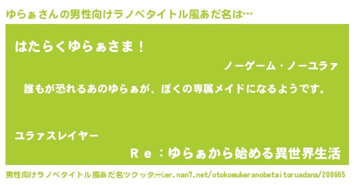 | 意味不明あだ名 | 『永久保存ゆらぁ』『自称ゆらぁ』 |