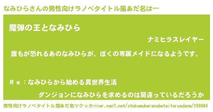 | 胡散臭い通販商品みたいなあだ名 | 『来世でも幸せになれる健康食品…その名も「なみひら」』 |