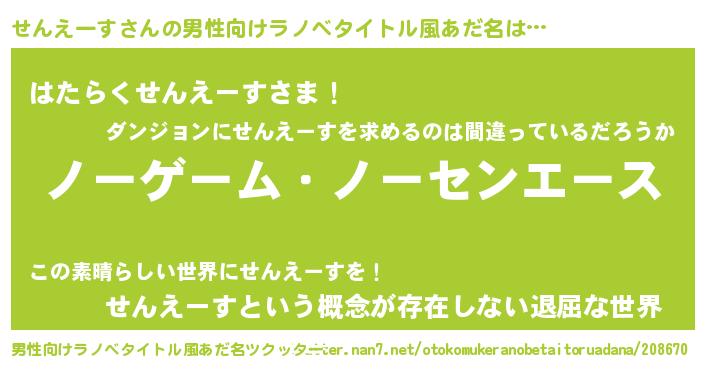 | 女子向けラノベタイトル風あだ名 | 『せんえーす恋絵巻』 |