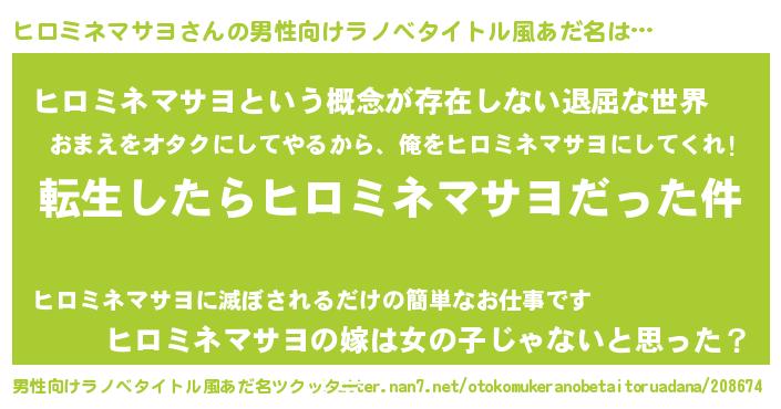 | ヘコむあだ名 | 『ヒロミネマサヨ(苦笑)』『ヒロを』 |