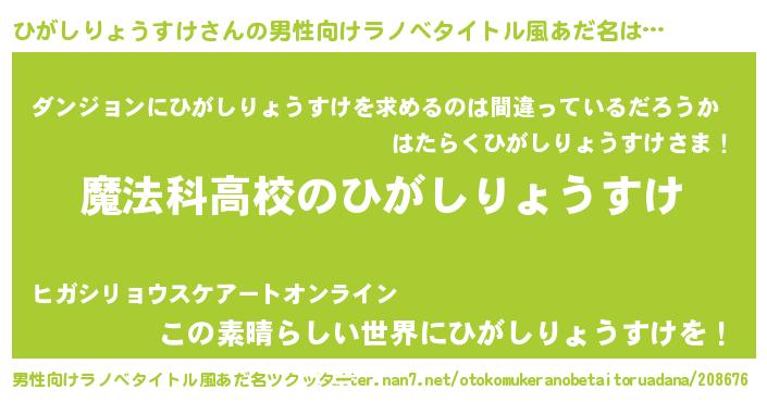 | 女子向けラノベタイトル風あだ名 | 『ひがしりょうすけなんてお断りですっ。』 |