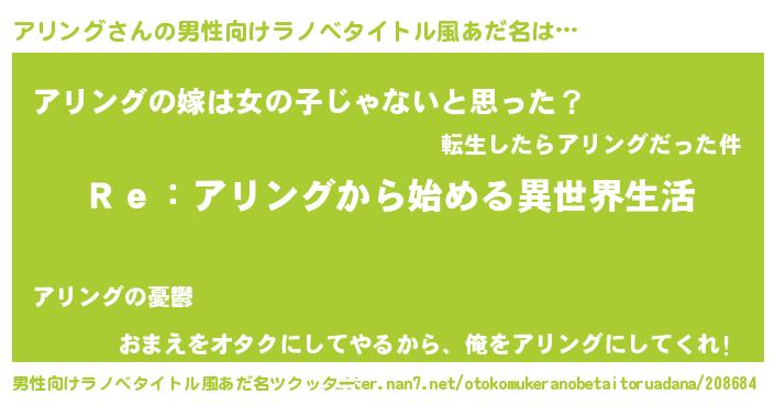 | 女子向けラノベタイトル風あだ名 | 『闇のアリング』 |