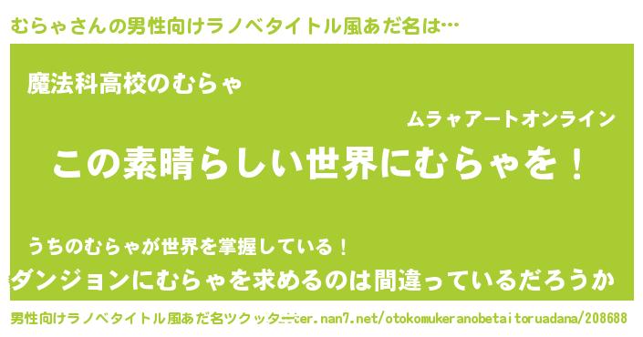 | ヒーロー風カッコイイあだ名 | 『仮面ムラダー』『サイバー戦士ムラャ』 |