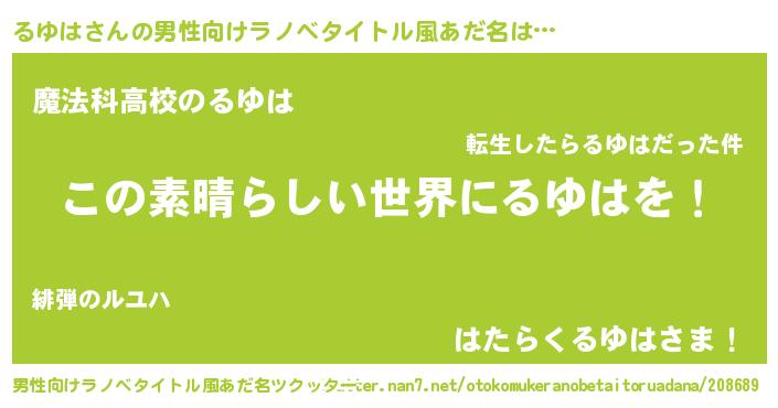 | 意味不明あだ名 | 『住所不定無職るゆは(14歳)』『自称るゆは』 |
